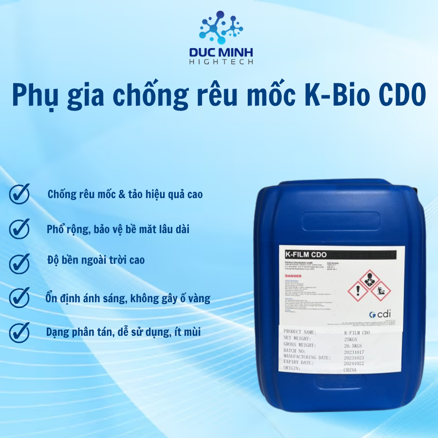 Owing to its strengthened algicidal activity, K-FILM® CDO can be used with the same efficiency in the coatings whatever the place where it will be applied, even in the area with a lot of humidity as the tropical countries.