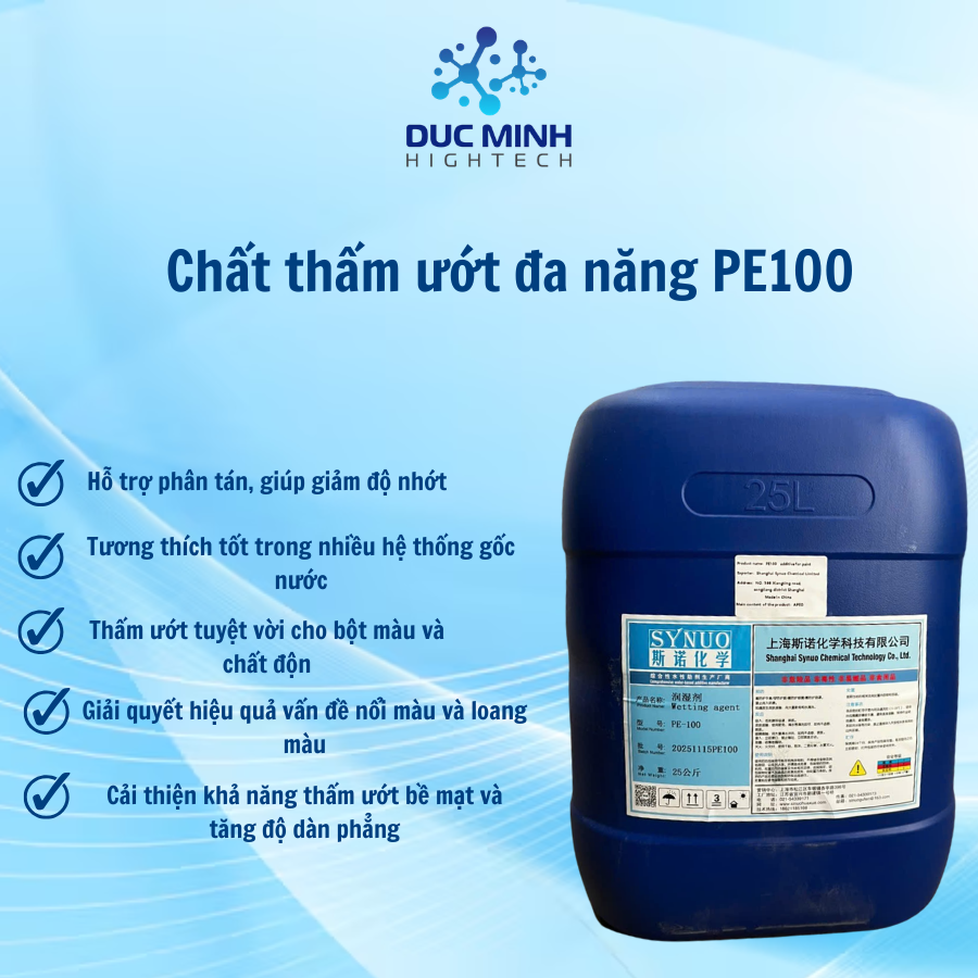 - Phương pháp: Sản phẩm có thể được thêm trực tiếp vào công thức. PE100 chứa chất chống đông và sẽ không bị đông đặc ở nhiệt độ trên –5°C, giúp thuận tiện cho việc sử dụng.